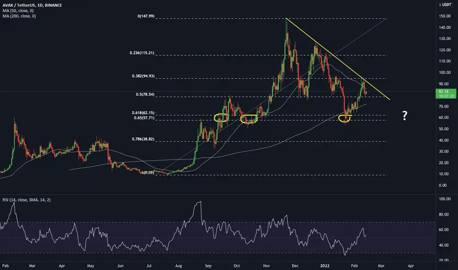 Avalanche got rejected by the upper trend-line. The trend is your friend! I expect more downside if we don´t get above $100 significantly (New higher high). First target to the downside $60!