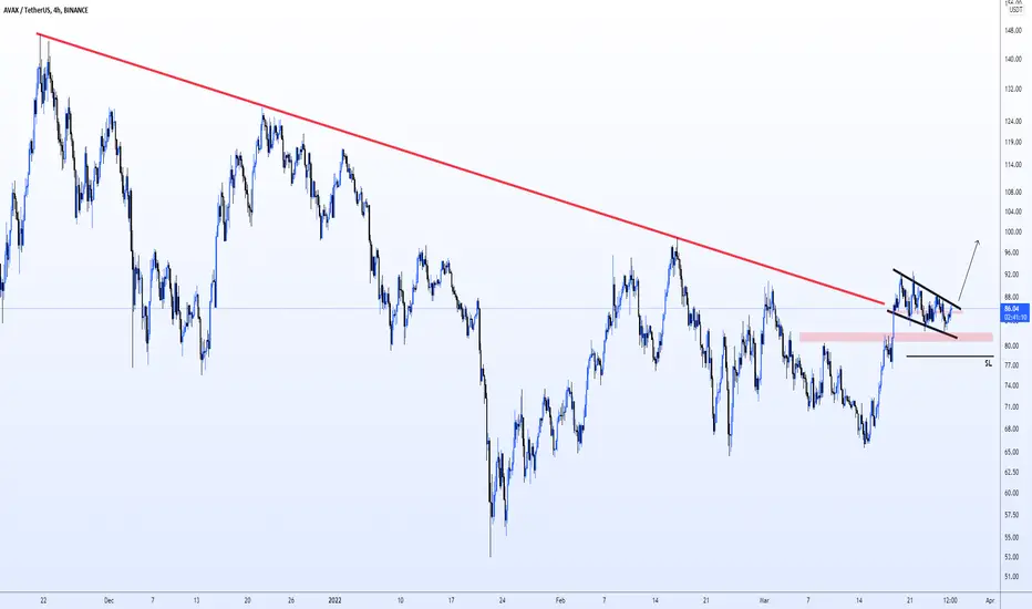 AVAX Broke the downtrend line and is consolidating into a bullflag above the resistance. A breakout upward the bullflag may give good bullish momentum for AVAX
