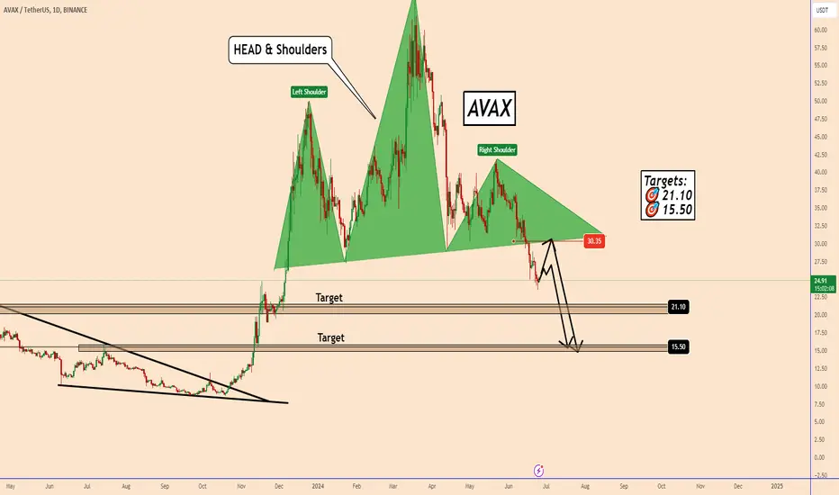 AVAX confirmed a bearish trend after the price broke out from a daily Head & Shoulders pattern.
