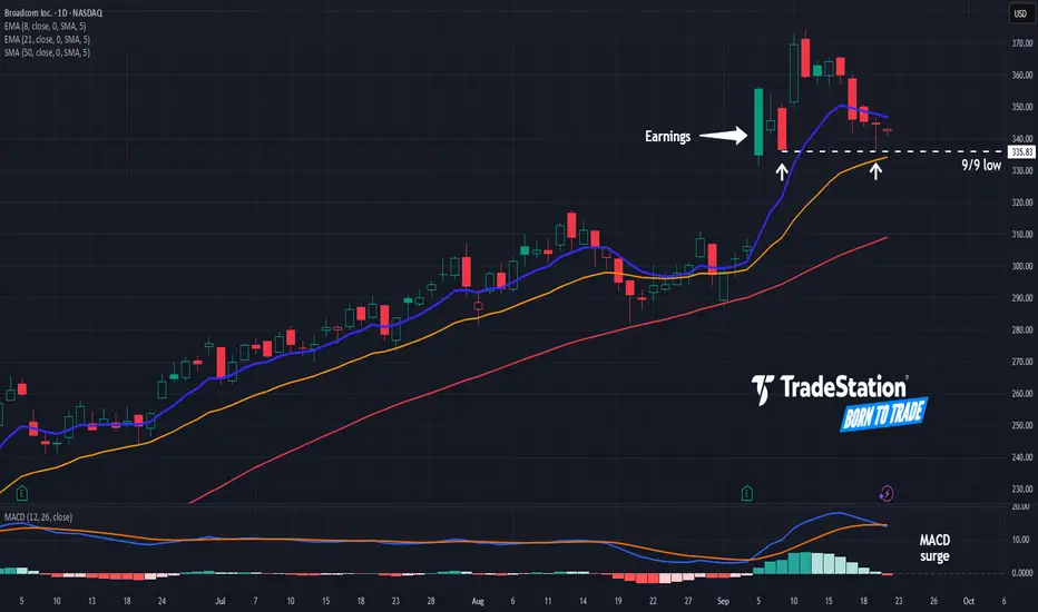 Broadcom surged to new record highs two weeks ago and now it’s pulled back.