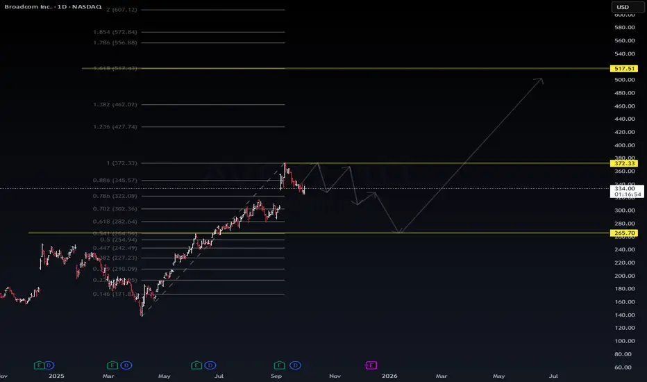 Hold 322–333 support → reclaim 372 → path opens toward 400 → 517.