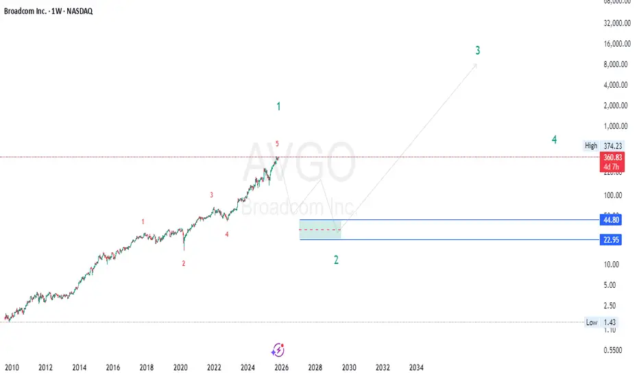 AVGO (Broadcom) is on the brink of a massive correction, with charts pointing toward a potential plunge into the $45–$23 zone — a brutal reset that could shake the entire semiconductor sector before the next bull cycle begins. ⚠️📉”