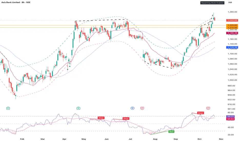 AXISBANK has faced multiple rejections near 1250–1260 resistance.