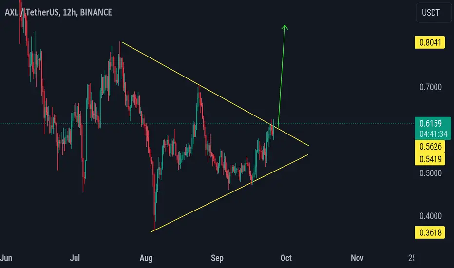 Axl/USDT is currently approaching a potential breakout from a triangle pattern, suggesting that a significant price movement could be on the horizon. If the breakout is successful, I anticipate a bullish trend in the coming days. It's important to monitor key resistance levels for confirmation. Remember, this is not financial advice; always do your own research (DYOR) before making any investment decisions.