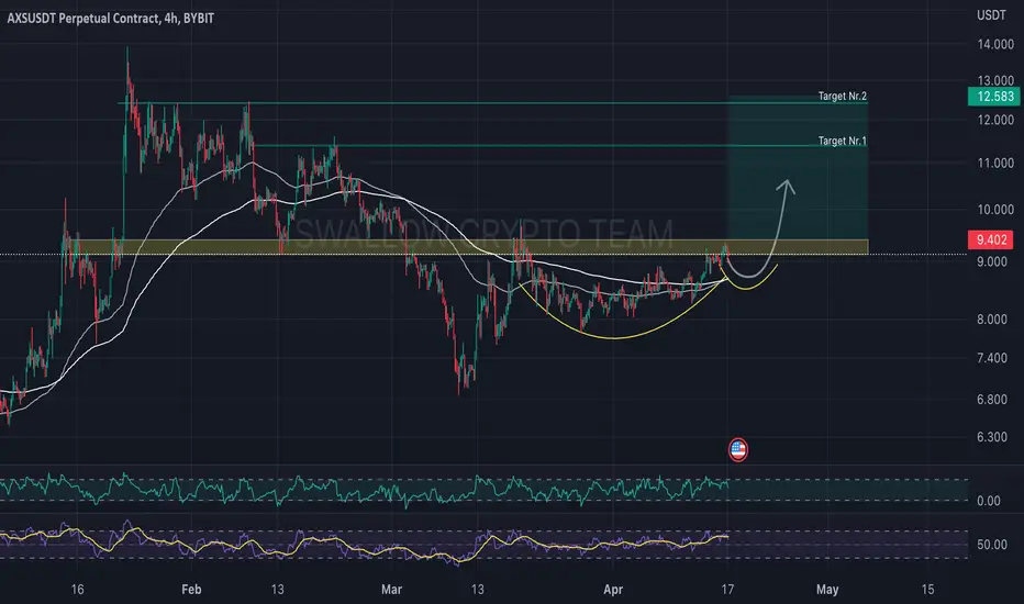 Let's take a look at AXS coin. After forming a nice Cup and getting rejected at resistance zone we see a good chance for a pattern to form here - Cup & Handle. We will be waiting for price to slip towards EMAs after what we want to see a nice re-test of that upper resistance and a potential breakout as well!