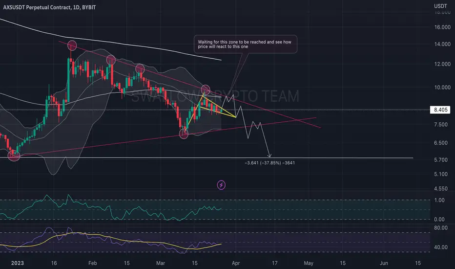 AXS/USDT pair is next on our watch list today. We are looking here for some bullish movement inside that triangle formation which could result the price to test that $9.35 zone (Where is also sitting the 100EMA zone). From there on we will try to look for good short position with potential rejection of that zone!
