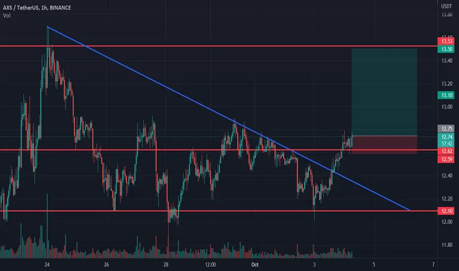 Axie Infinity broke trough the descending trendline. Asset broke trough the resistance level. Bullish movement to resistance level at 13.5 is expected to happen.