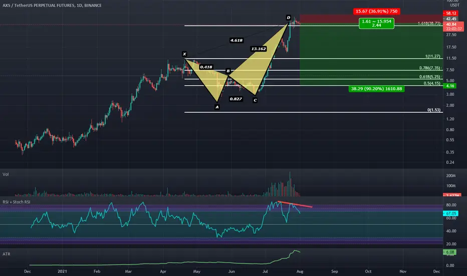 Very Similar to the Bearish Log Scale Butterfly i found on Bitcoin. This setup however does not have the best risk to reward due to the high volatility of this coin. i suggest that if you trade it not to risk a huge amount of cash.