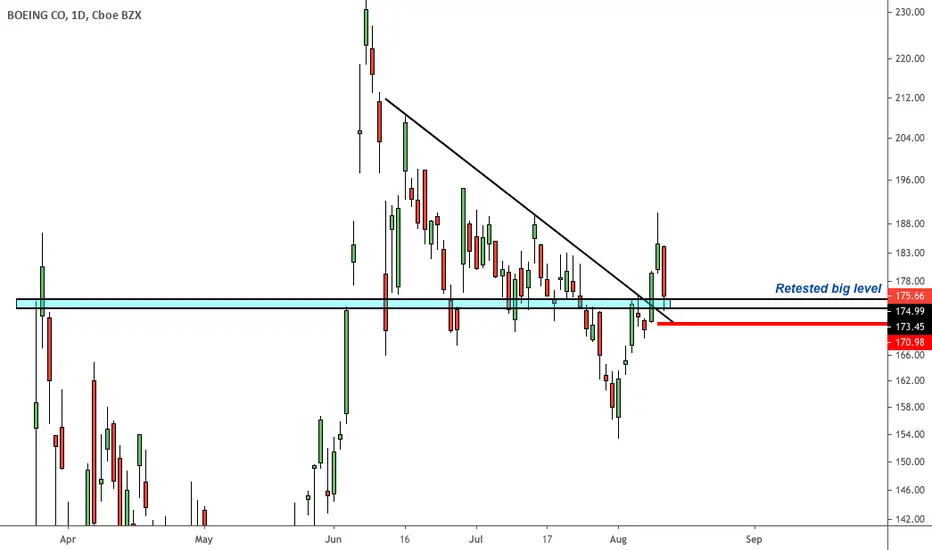 173 held today but we did not see a break above 179 like I was looking for. Boeing may be entering a consolidation phase that will expose tight stops. As a longer time frame trade it remains a hold. For short term traders I think we could expect more challenging volatility. There will be easier trades elsewhere until 179 is broken.Trade closed: stop reached