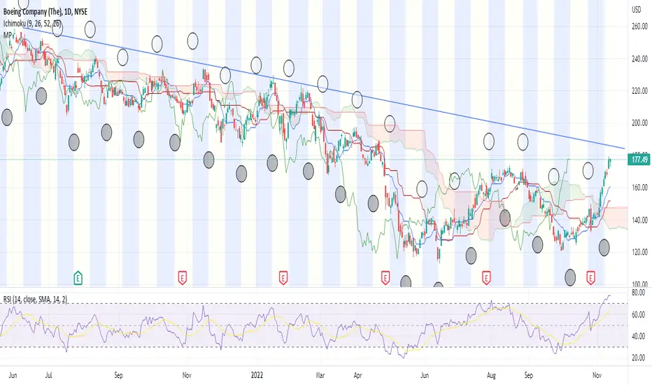 Boeing is overbought here and ripe to start a position and be prepared to ADD up to downtrend resistance of $184.52. One would add $180, $182, $184 if seen