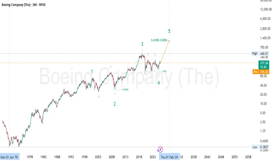 #Boeing #BA #ElliottWave #SmartMoney #PriceAction #Fibonacci #Wave5 #TriangleBreakout #TechnicalAnalysis #LongTermInvestment #MacroTrading #StockMarket #BullishOutlook #Aerospace #WaveTheory #SwingTrading #AviationRecovery #FibonacciTargets #TradingStrategy