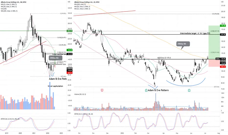 Worst looks to be over for BABA after hitting a low on 15 March and then went on to form an Adam and Eve (A&E) reversal pattern.