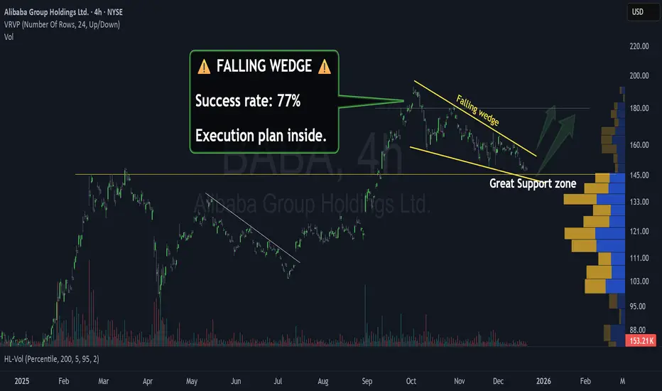 BABA: Two Strategic Entries for Falling Wedge at Support