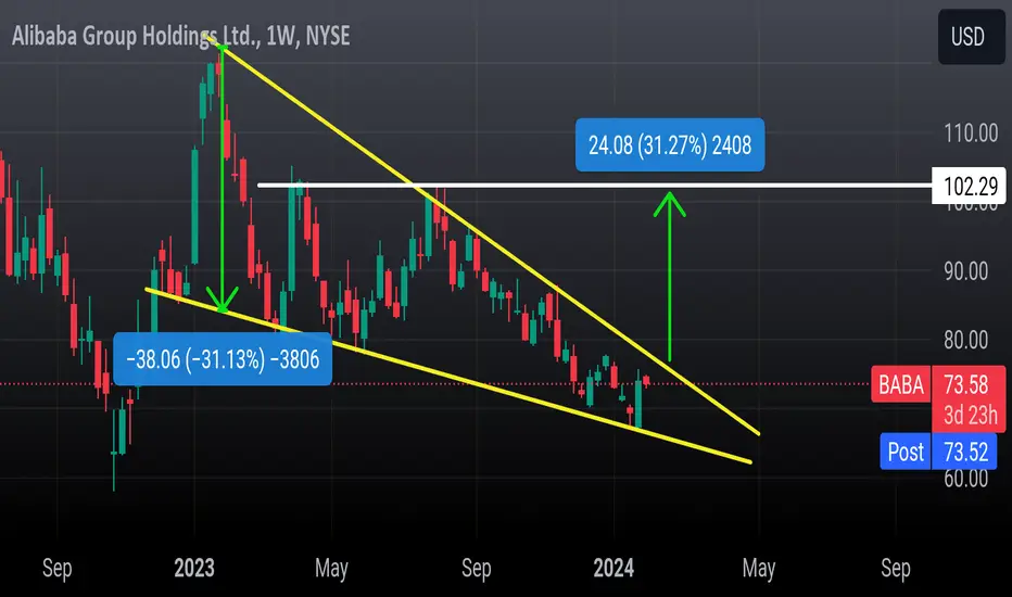 The move should be 30% upon wedge breakout, which would put Ali baba at 100 by mid spring.