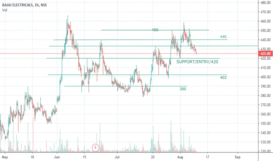 420 SEEMS TO BE A SUPPORT FROM IT MIGHT REVERSE AND SHOW UPSIDE MOVE, IF NOT IT RETRACE BACK TO 403 AND 390.