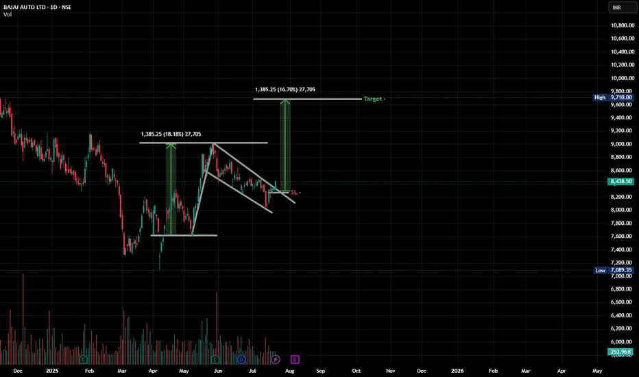 BAJAJ_AUTO Just did a noice breakout of a pole and flag there. minimal SL and a good enough target. 9020 may be a resistance