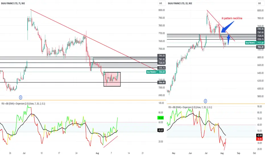 The stock is reversing from demand zone after 4 days of consolidation in the same zone, also there is a double top breakdown in Daily time frame, and the stock is poised for a retest of the Double Top neckline area.