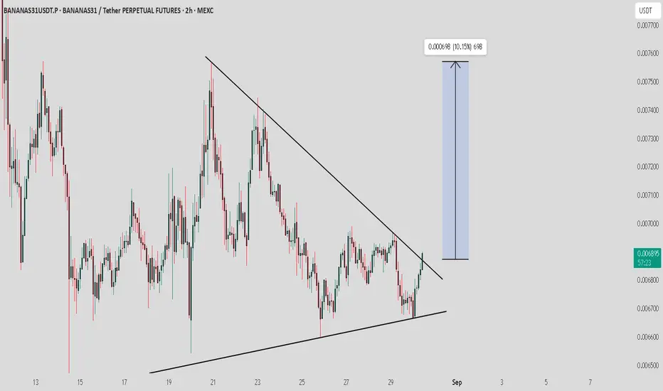 BANANAS31/USDT is breaking out of its trendline resistance. If this breakout holds, a short-term rally toward $0.0075 looks likely.