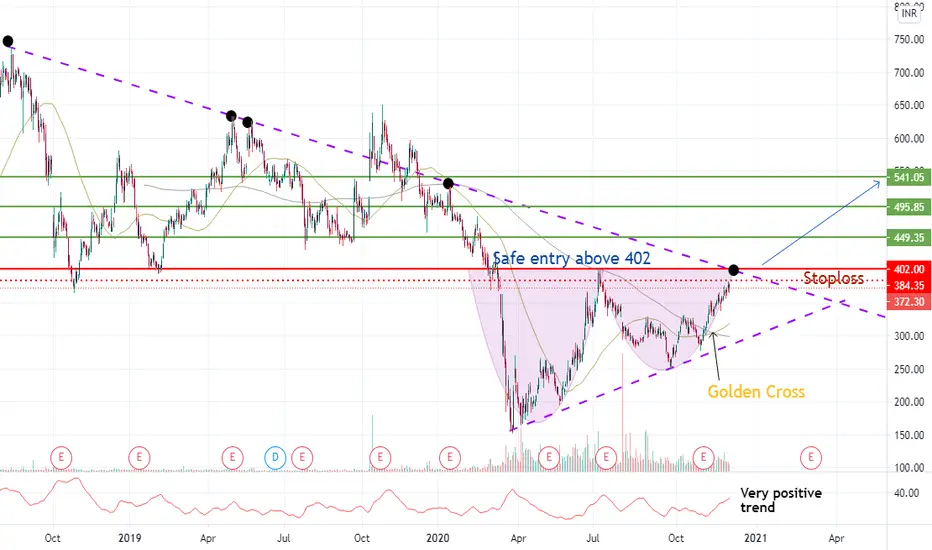 So risky investors can take a chance entering at CMP- 373 for a target of 402 which is about 8% but a strict stop loss is mandatory. This 8% target might be achieved in the next few intraday sessions as well.