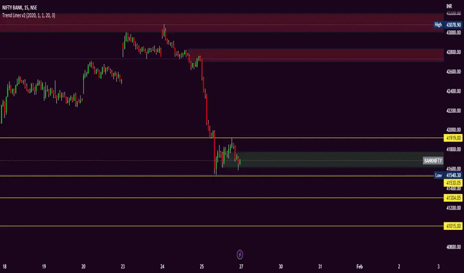 If the Banknifty after a Gap up opening sustain below last day low 41540 and making resistance below 41540 then the open Targets for T1-41300,T2-41100,T3-41000