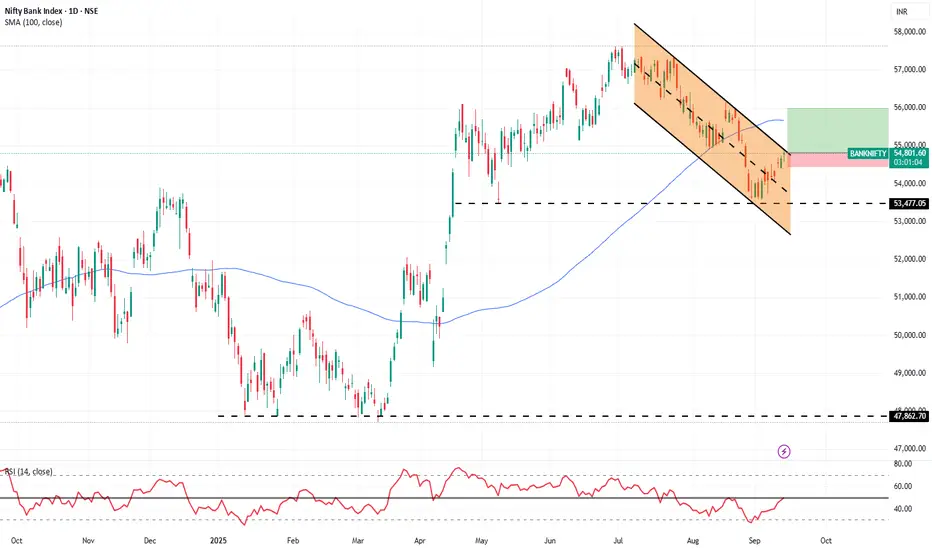 Buy banknifty fut above 54825(spot) with stoploss below 54450 & target of 56000