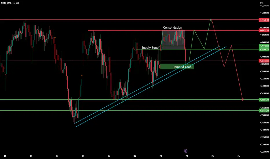 if tomorrow opens gap down and clearing demands and price again comes back to the supply we will go for sell in bank nifty.