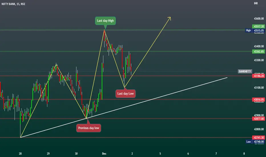 And if the Banknifty opens small down and sustains below 15 candles 43200 then opening the target previous day low target