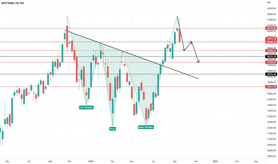 Bank nifty has reached its right shoulder level so there could be a little re test of correction in the down trend. So if any one is in buy trend kindly make ur analysis and adjust ur positions.