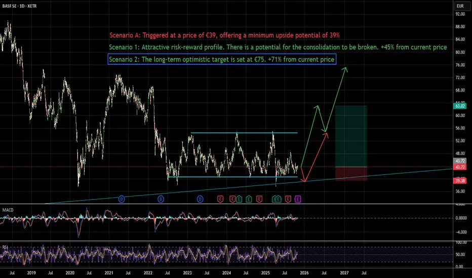 Scenario 2: The long-term optimistic target is set at €75. +71% from current price