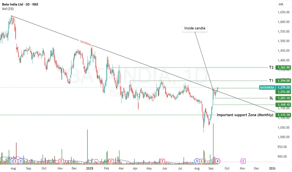 Bata looks attractive after reclaiming support and giving a confirmed breakout. Risk is well-defined at 1200, while upside targets of 1294 / 1362 offer favorable risk-reward if momentum sustains.
