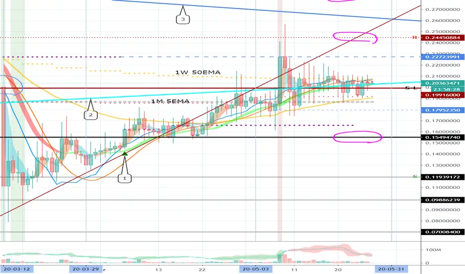 If you get support above 1W 50EMA (approximately 0.20729727), I think you are more likely to climb.
