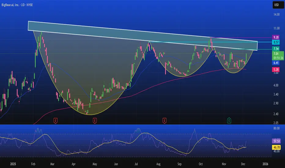 The multi-cup structure we’ve been tracking is still continuing. Price is pressing right back into the same flat trendline, keeping the overall setup intact.