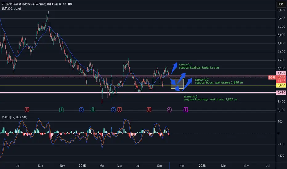 2.b. Still price going down like scenario 2.a, but if there's no sign to reversal and break the local support, wait again at area 3,620, it's strong support. See the price play around the support, and go buy if there's sign to reversal
