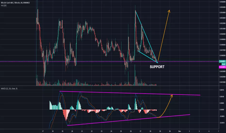 BCHABC - Falling wedge hitting support, watch for breakout!