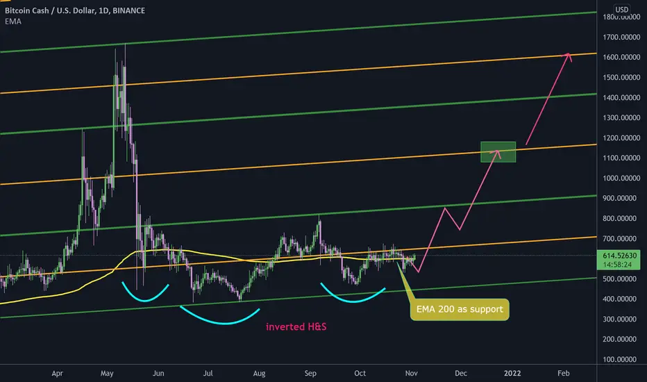 BCH shaped inverted head and shoulders that price can reach $1000, a break above resistance of $1200 will rise price to $1600 and more.