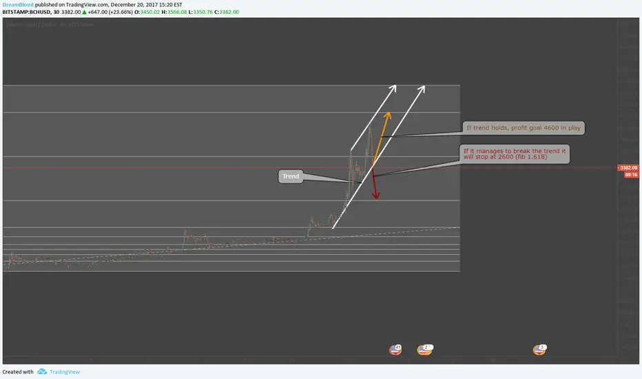 Update:We can expect a drop to 3200, has good support there. The trend is that Bch goes up in price when bitcoin is droping and vice versa, looking at bitcoin now, it's bearish, so expect a pump coming to bch soon.