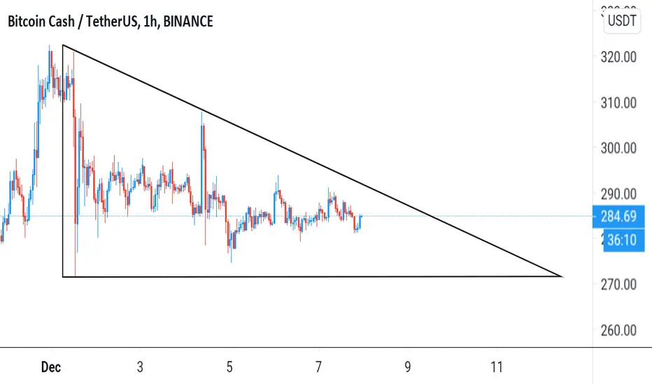 BCHUSDT is printing a descending triangle pattern on the 1H timeframe.