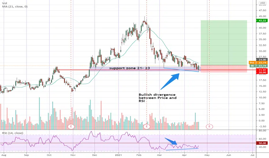 BE has been in a frustrating slow grind generally downwards for the past 6 weeks while a Bullish Divergence between Price and RSI has been slowly building.