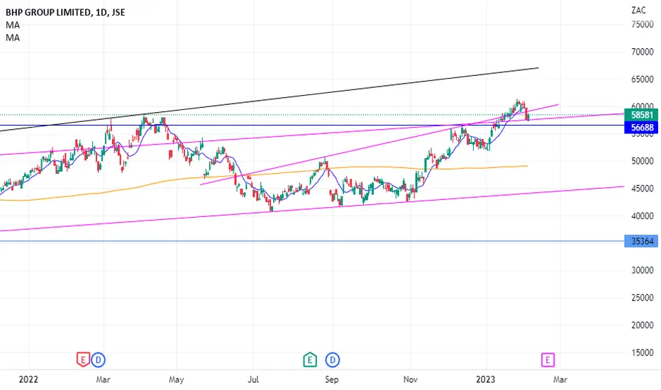 BHG has tried to reach the upper resistance (black line), however it ends the week with a swing high in week 29. It is reaching a time where it must trend downwards. It is currently caught between a parallel channel trendline where it found support.