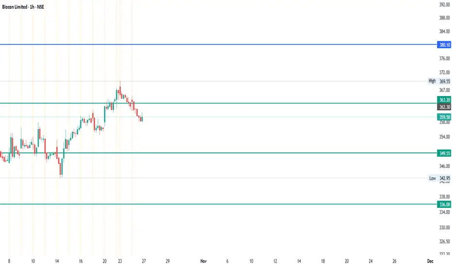 Pivot Point: ₹ 349.55 Support: ₹ 336.01 Resistance: ₹ 363.21