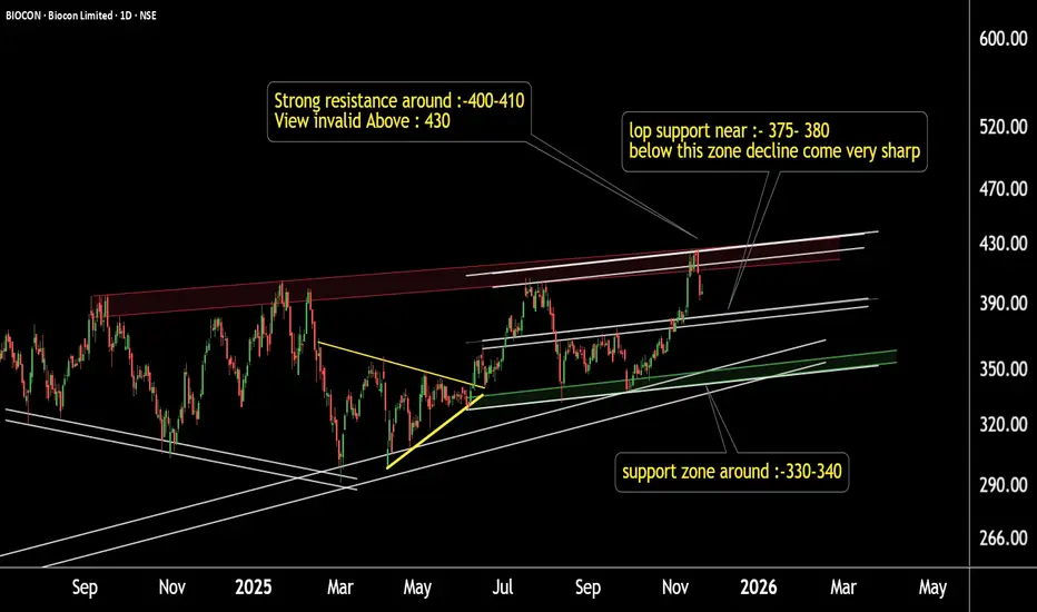 If this support breaks, the next strong support zone lies at 330–345, from where a potential reversal can be expected.