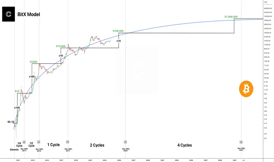 We can then even determine the time it would take to reach 1,000,000 which would be 4 cycles, or by late 2041.