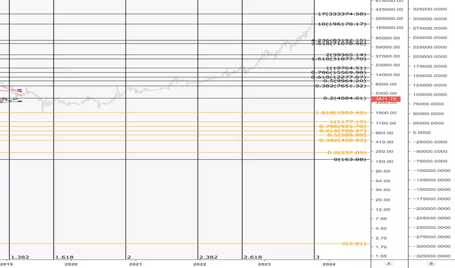 In the second time period, plotting the fib time multiple shows that the next all time high will come in around Oct 2023.
