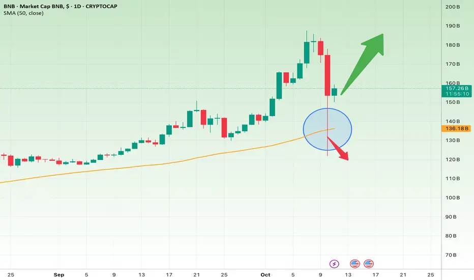 The BNB market cap has recently corrected sharply and is now testing its 50-day SMA around $136B, which acts as strong support.