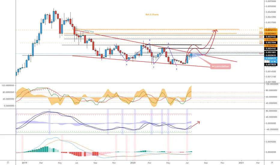 BNB.USDT chart below outlines the layers to break the main trend line, which will reflect the BNB.BTC pairing resistance trendline above.