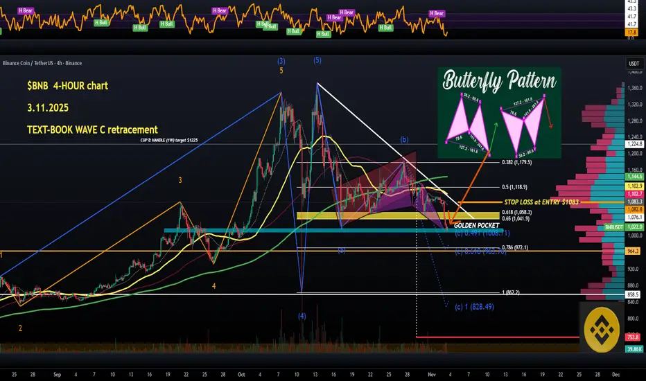 BNB so far — nothing changes except the GOLDEN POCKET is acting as our MAIN RESISTANCE zone.