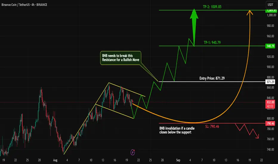 Currently, #BNB is forming a bullish flag pattern, which often acts as a continuation signal in strong uptrends.