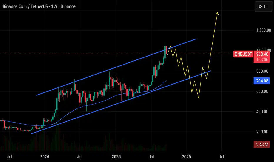 BNB is holding near $968 with solid momentum, but I expect a healthy dip toward the $710–550 support zone before the next big move. That’s the area I’ll be looking to load, with eyes on a breakout toward $1,200+.