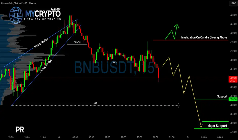Yello, Paradisers! Have you noticed how BNB quietly broke down from its rising wedge while most traders are still waiting for direction? This could be the early signal of a much deeper move—if you're not prepared, you might miss the whole thing.
