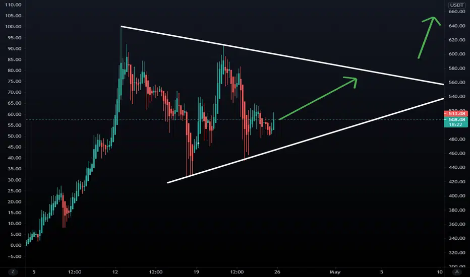 The price is located near the strong horizontal support of $490, but can go a bit lower to the ascending support of the bullish pennant. Overall, now is a good spot for buying.
